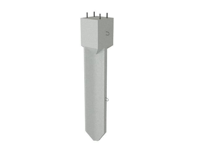 Стаканные трёхлучевые фундаменты ТС-120-3,5С состоят из нижней части – удлинённого трехгранного стержня с заострением для лучшего вхождения в грунт, и верхнего оголовка с квадратным сечением и цилиндрическим установочным местом для опоры. В оголовок устанавливается опора, затем место стыковки укрепляется сливной цементной стяжкой. Нижняя трёхлучевая часть сопрягается с верхней объединённым пространственным арматурным каркасом.